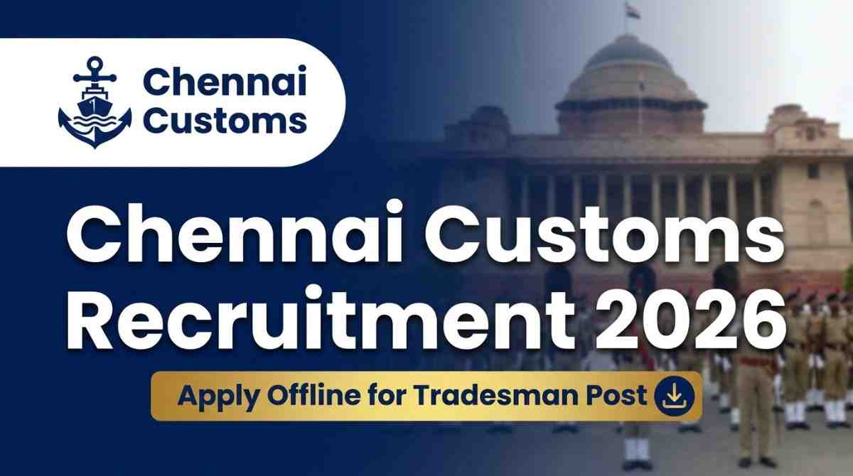 കേന്ദ്ര ധനകാര്യ മന്ത്രാലയത്തിന് കീഴിൽ പ്രവർത്തിക്കുന്ന ചെന്നൈ കസ്റ്റംസ് കമ്മീഷണറേറ്റിൽ (Office of the Commissioner of Customs, Chennai) പുതിയ തൊഴിലവസരങ്ങൾ. കസ്റ്റംസ് മറൈൻ വിംഗിലേക്ക് (Customs Marine Wing) ഗ്രൂപ്പ് സി (Group C Non-Gazetted) കാറ്റഗറിയിലുള്ള ട്രേഡ്സ്മാൻ (Tradesman), സീമാൻ (Seaman), ഗ്രീസർ (Greaser) എന്നീ തസ്തികകളിലേക്കാണ് ഇപ്പോൾ അപേക്ഷ ക്ഷണിച്ചിരിക്കുന്നത്[. യോഗ്യരായ ഇന്ത്യൻ പൗരന്മാർക്ക് വിജ്ഞാപനത്തോടൊപ്പമുള്ള അപേക്ഷാ ഫോം പൂരിപ്പിച്ച് തപാൽ വഴി (Offline) അപേക്ഷകൾ സമർപ്പിക്കാവുന്നതാണ്. അപേക്ഷകൾ 2026 ഏപ്രിൽ 30-നകം ഓഫീസിൽ ലഭിച്ചിരിക്കണം.