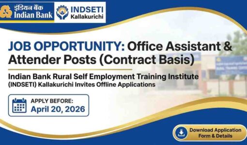 ഇന്ത്യൻ ബാങ്ക് ട്രസ്റ്റ് ഫോർ റൂറൽ ഡെവലപ്മെൻ്റിന് (IBTRD) കീഴിൽ പ്രവർത്തിക്കുന്ന കള്ളക്കുറിച്ചി (Kallakurichi) ഇന്ത്യൻ ബാങ്ക് റൂറൽ സെൽഫ് എംപ്ലോയ്മെന്റ് ട്രെയിനിംഗ് ഇൻസ്റ്റിറ്റ്യൂട്ടിലേക്ക് (INDSETI) പുതിയ തൊഴിലവസരങ്ങൾ. ഓഫീസ് അസിസ്റ്റൻ്റ്…