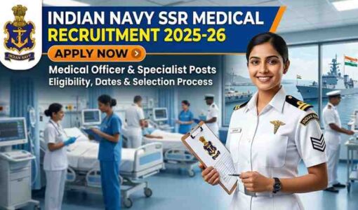 ഇന്ത്യൻ നേവിയിൽ മെഡിക്കൽ ബ്രാഞ്ചിലേക്ക് സീനിയർ സെക്കൻഡറി റിക്രൂട്ട്സ് (SSR – Medical) തസ്തികയിലേക്ക് അപേക്ഷ ക്ഷണിച്ചു. അവിവാഹിതരായ പുരുഷന്മാർക്കാണ് അപേക്ഷിക്കാൻ അവസരമുള്ളത്. 02/2025, 02/2026 എന്നീ രണ്ട് ബാച്ചുകളിലേക്കാണ് തിരഞ്ഞെടുപ്പ്…