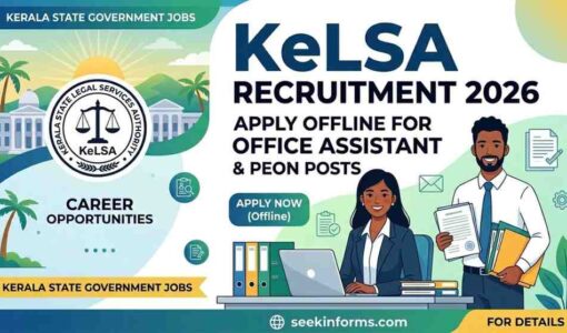 കേരള സ്റ്റേറ്റ് ലീഗൽ സർവീസസ് അതോറിറ്റിയുടെ (KeLSA) കീഴിലുള്ള വിവിധ ജില്ലകളിലെ ലീഗൽ എയ്ഡ് ഡിഫൻസ് കൗൺസൽ ഓഫീസുകളിലേക്ക് (LADCS) പുതിയ തൊഴിൽ വിജ്ഞാപനം പുറത്തിറക്കി. ഓഫീസ് അസിസ്റ്റൻ്റ് (Office Assistant),…