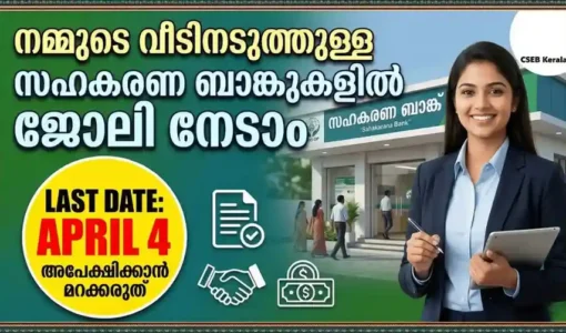 കേരളത്തിലെ വിവിധ സഹകരണ സംഘങ്ങളിലേക്കും ബാങ്കുകളിലേക്കും വ്യത്യസ്ത തസ്തികകളിൽ നേരിട്ടുള്ള നിയമനത്തിനായി സഹകരണ സർവീസ് പരീക്ഷാ ബോർഡ് (CSEB) അപേക്ഷ ക്ഷണിക്കുന്നു. ജൂനിയർ ക്ലർക്ക്/കാഷ്യർ, സെക്രട്ടറി, അസിസ്റ്റൻ്റ് സെക്രട്ടറി, ഡാറ്റാ എൻട്രി…